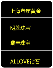 旗下代理多个国际国内知名品牌:上海老庙黄金、明牌珠宝、ALLOVE钻石、瑞丰珠宝、东方瑞璐·小棉袄的陪伴、灵云翡翠等。